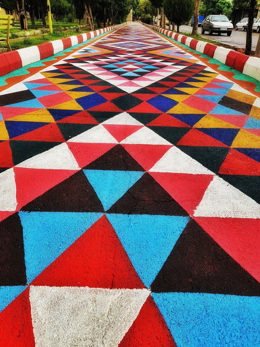طرح گلیم بیجار بر روی پیاده روی (شهر بیجار استان کردستان)