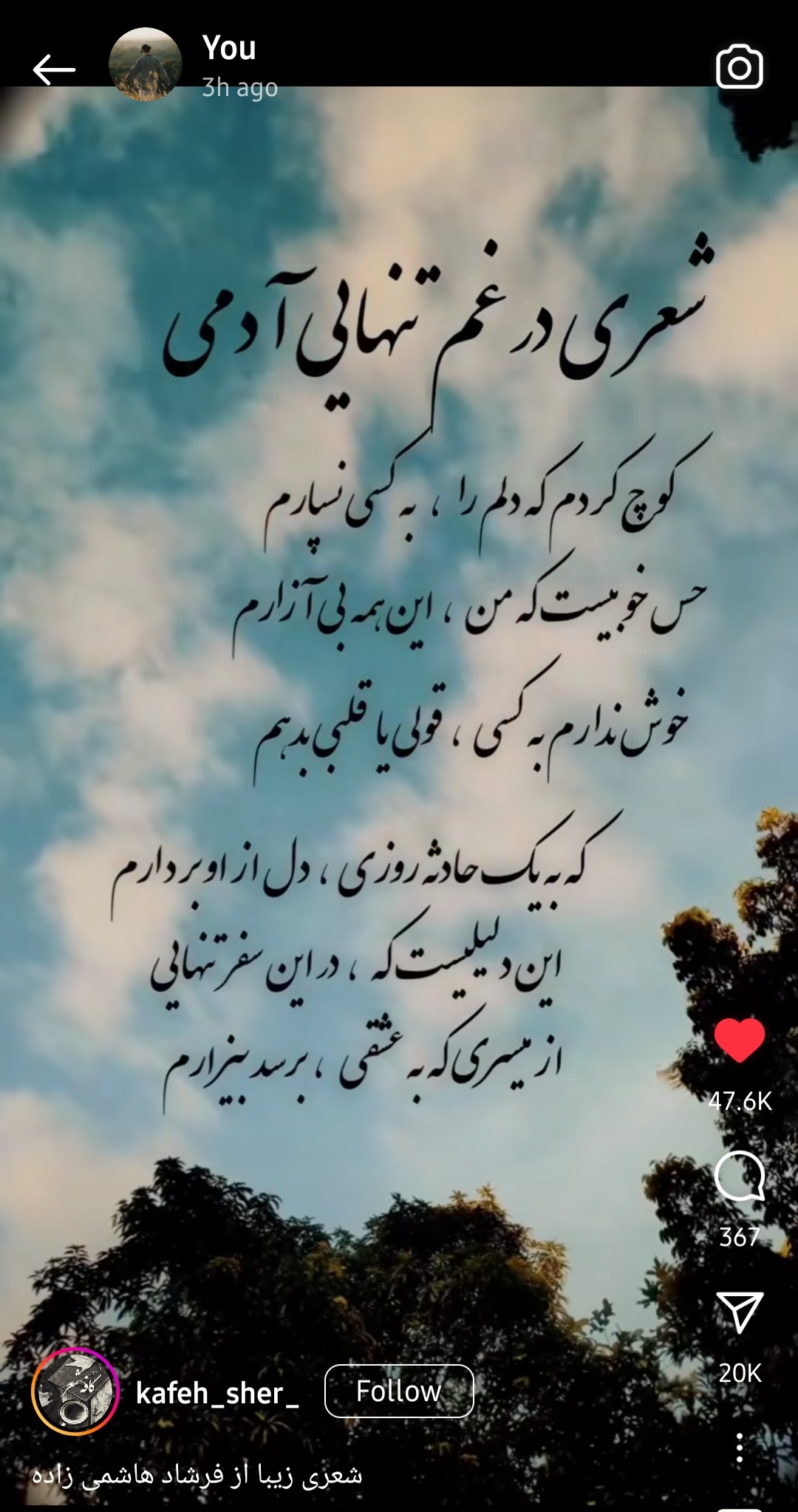 من آدم خیلی خوبی نیستم. عوضش همیشه سعی میکنم دل نشکنم. با حرفام کسیو ناراحت نکنم. مقابل حرفاشون سکوت کنم. به اونی که نیاز داره کمک میکنم و کنارشم. به حرفای کسی که دلش گرفته گوش میدم.